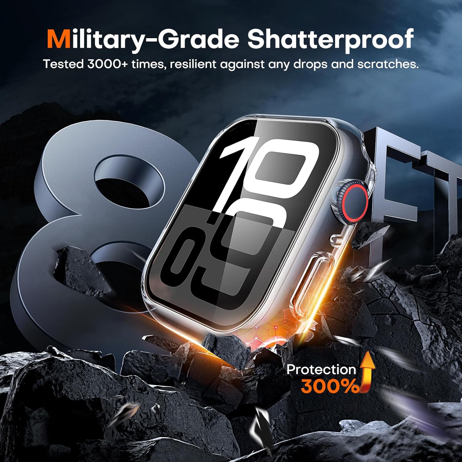 Protect your Apple Watch Series 11/10 (46mm and 42mm) with this ANANK shockproof clear case featuring a built-in 9H tempered glass screen protector. It delivers 360° full coverage while keeping the watch slim, stylish, and responsive.