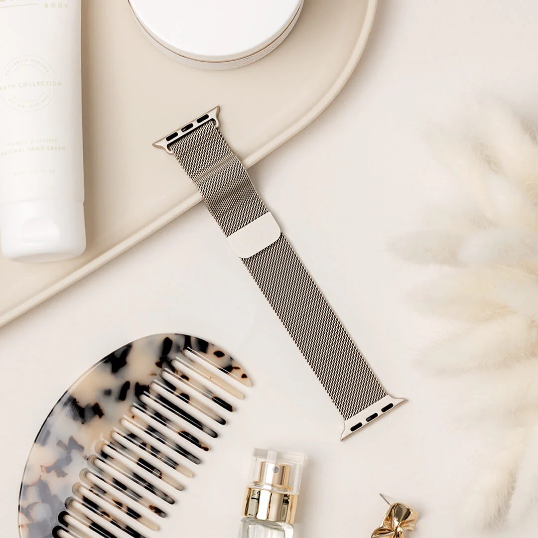 Upgrade your everyday style with the COTECi Apple Milanese Loop in elegant Starlight. This stainless steel Apple Watch strap is designed for users who want comfort, durability and a premium look suitable for both casual and formal wear.