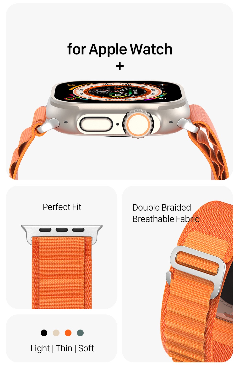 Add a bold pop of color to your Apple Watch with the DUXDUCIS Apple Watch Alpine Loop in vibrant Orange. Built for durability and comfort, this rugged woven nylon strap is designed for adventure and daily wear. Compatible with the Apple Watch Ultra, SE, and Series 11–1, and fits 42/44/45/46/49mm models.