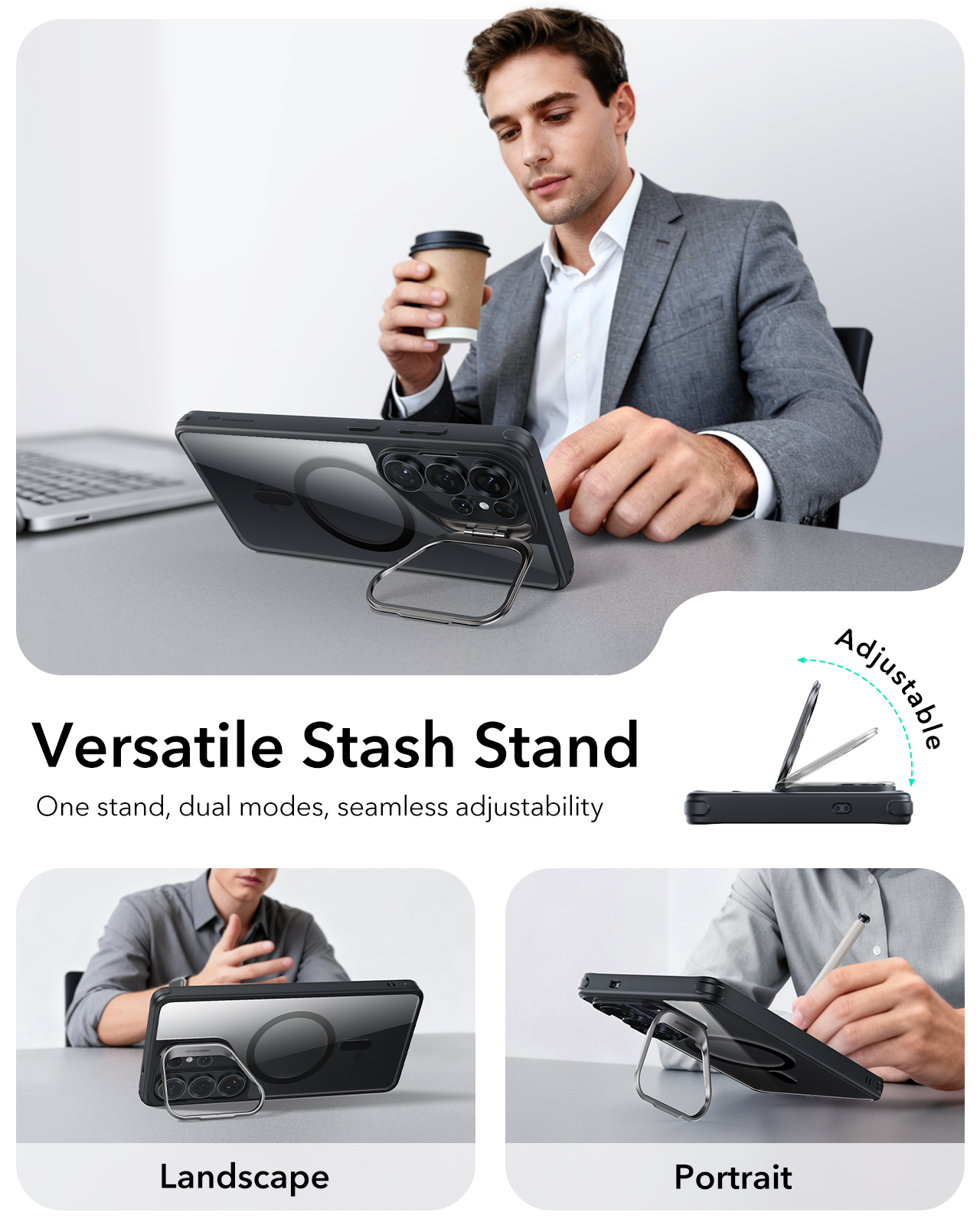 If you’re searching for the best case for Samsung S26 Ultra, this ESR Classic Hybrid Stash Stand is built to deliver protection, magnetic convenience, and hands-free functionality in one slim design.