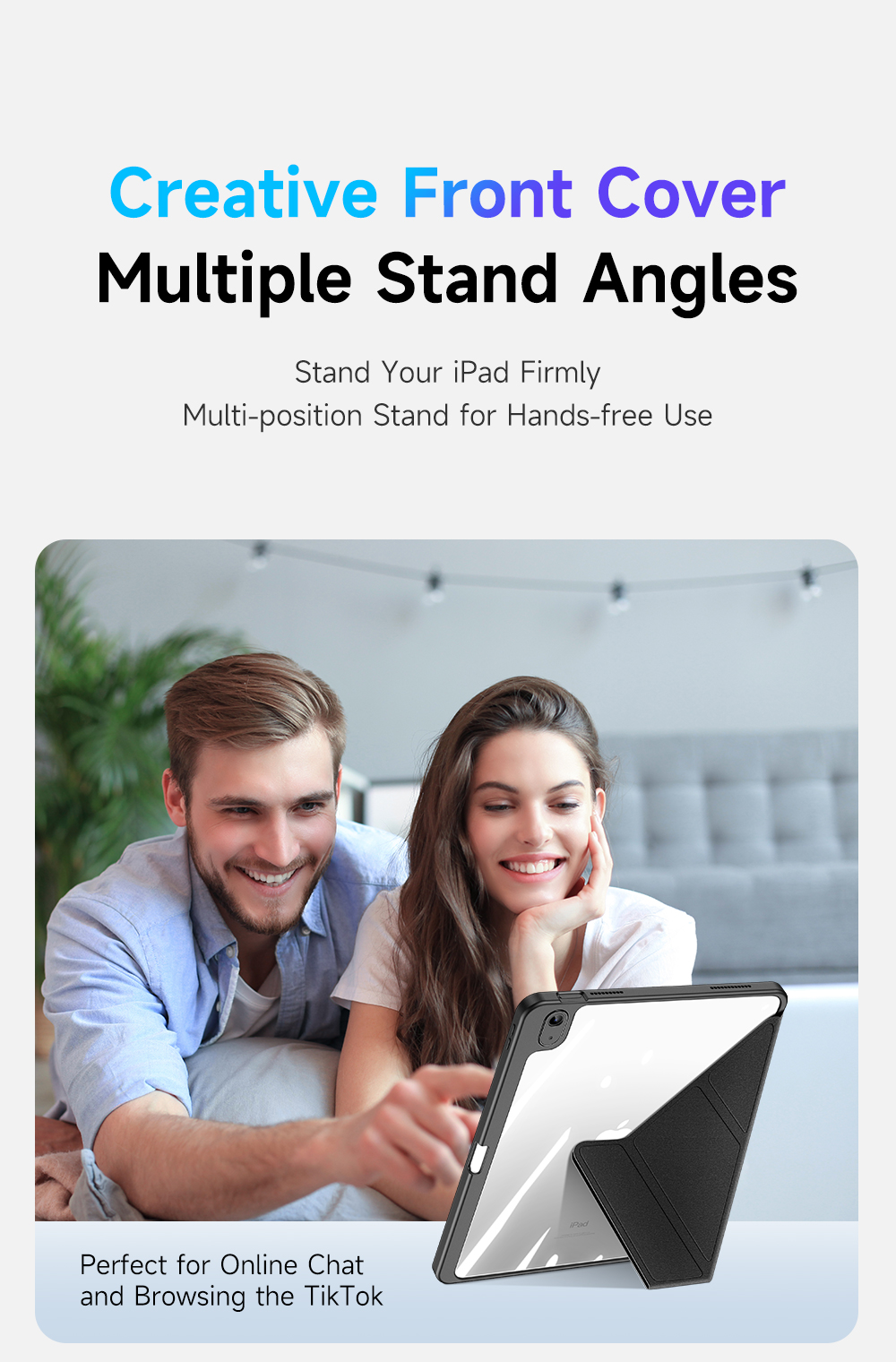Crafted with high-quality PU leather, PC, and TPU materials, this case is both lightweight and durable. The clear detachable back cover adds a layer of versatility, allowing you to use the iPad freely for gaming or browsing without the front flap.