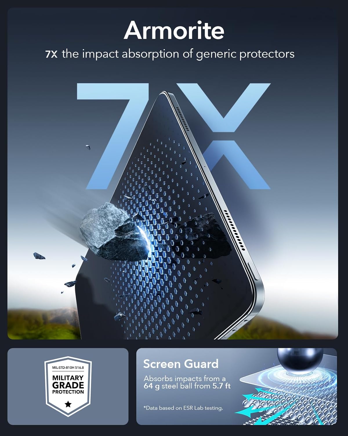 | Protection Level | 7X stronger Armorite glass, withstands 110 lb pressure | Strong tempered glass, drop protection | Standard tempered glass protection |